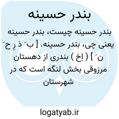 بندر حسینه. [ ب َ دَ رِ ح َ ن َ ] ( اِخ ) بندری از دهستان مرزوقی بخش لنگه است که در شهرستان لار واقع است. و 378 تن سکنه دارد. ( از فرهنگ جغرافیائی ایران ج 7 ).