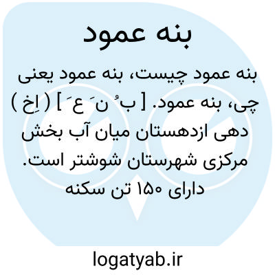 بنه عمود. [ ب ُ ن َ ع َ ] ( اِخ ) دهی ازدهستان میان آب بخش مرکزی شهرستان شوشتر است. دارای 150 تن سکنه است. ( از فرهنگ جغرافیائی ایران ج 6 ).