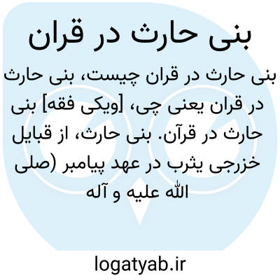 [ویکی فقه] بنی حارث در قرآن. بنی حارث، از قبایل خزرجی یثرب در عهد پیامبر (صلی الله علیه و آله وسلّم) بود.