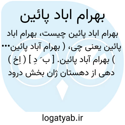 ( بهرام آباد پائین••• ) بهرام آباد پائین. [ ب َ دِ ] ( اِخ ) دهی از دهستان ژان بخش درود است که در شهرستان بروجرد واقع است و 257 تن سکنه دارد. ( از فرهنگ جغرافیائی ایران ج 6 ).