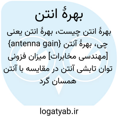 {antenna gain} [مهندسی مخابرات] میزان فزونی توان تابشی آنتن در مقایسه با آنتن همسان گرد