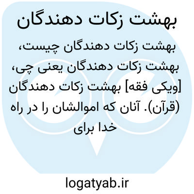 [ویکی فقه] بهشت زکات دهندگان (قرآن). آنان که اموالشان را در راه خدا برای نیازمندان قرار می دهند، و زکات پرداخت می کنند، پاداش آنها بهشت خواهد بود.