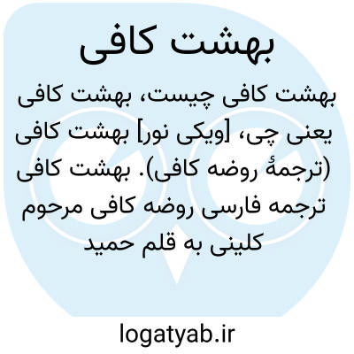 [ویکی فقه] بهشت کافی (کتاب). بهشت کافی ترجمه روضه کافی مرحوم کلینی، که توسط جناب آقای حمید رضا آژیر در سال ۱۴۱۹ ق و ۱۳۷۷ ش به زبان فارسی ارائه شده است.
