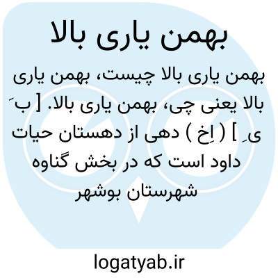 بهمن یاری بالا. [ ب َ ی ِ ] ( اِخ ) دهی از دهستان حیات داود است که در بخش گناوه شهرستان بوشهر واقع است و 700 تن سکنه دارد. ( از فرهنگ جغرافیائی ایران ج 7 ).