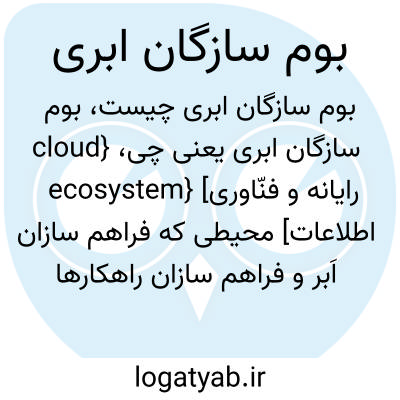 {cloud ecosystem} [رایانه و فنّاوری اطلاعات] محیطی که فراهم سازان اَبر و فراهم سازان راهکارها و فنّاوری های آن و مصرف کنندگان اَبر در آن کار می کنند