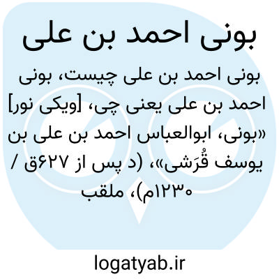 [ویکی نور] «بونی، ابوالعباس احمد بن علی بن یوسف قُرَشی»، (د پس از 627ق / 1230م)، ملقب به محیی الدین، تقی الدین و شرف الدین، از مردم بندر بونه و از نامورترین مؤلفان مسلمان در علوم غریبه، است.