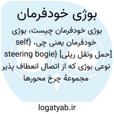 {self steering bogie} [حمل ونقل ریلی] نوعی بوژی که از اتصال انعطاف پذیر مجموعۀ چرخ محورها با قاب بوژی تشکیل می شود و جهت محورها را با شعاع انحنای پیچ هماهنگ می کند