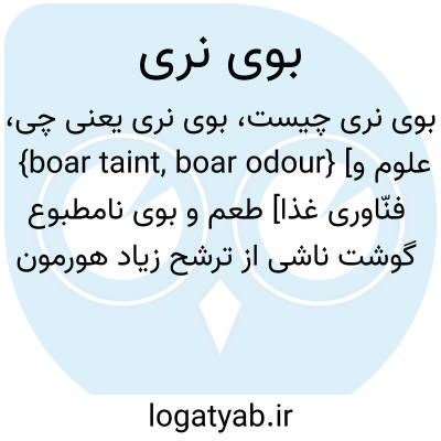 {boar taint, boar odour} [علوم و فنّاوری غذا] طعم و بوی نامطبوع گوشت ناشی از ترشح زیاد هورمون های جنسی نر برخی از دام ها