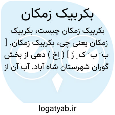 بکربیک زمکان. [ ب َ ب َ ک ِ زَ ] ( اِخ ) دهی از بخش گوران شهرستان شاه آباد. آب آن از رودخانه زمکان. محصول آن غلات و صیفی و لبنیات. شغل اهالی زراعت و گله داری. ( فرهنگ جغرافیایی ایران ج 5 ).