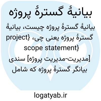 {project scope statement} [مدیریت-مدیریت پروژه] سندی بیانگر گسترۀ پروژه که شامل اهداف و نتایج و محصولات و مفروضات و محدودیت ها و امکانات پروژه است