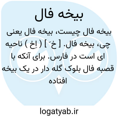 بیخه فال. [ خ َ ] ( اِخ ) ناحیه ای است در فارس. برای آنکه با قصبه فال بلوک گله دار در یک بیخه افتاده است آنرا بیخه فال گویند میانه جنوب و مغرب لار است درازای آن از قریه کل تا چاه نوهفت فرسخ و نیم و پهنای آن از دو فرسخ نگذرد. قصبه ٔآن ناحیه اشکنان است. ( از فارسنامه ناصری ص 288 ).