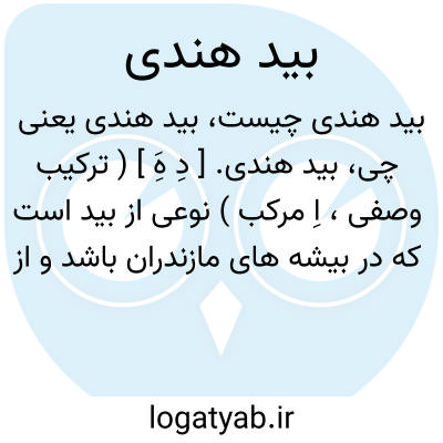 بید هندی. [ دِ هَِ ] ( ترکیب وصفی، اِ مرکب ) نوعی از بید است که در بیشه های مازندران باشد و از میوه آن دوشاب گیرند. خلاف هندی. رجوع به هندی شود: اضاء؛ بیشه بید هندی. ( منتهی الارب ).