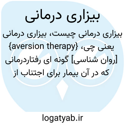{aversion therapy} [روان شناسی] گونه ای رفتاردرمانی که در آن بیمار برای اجتناب از رفتار یا نشانه های ناخوشایند ازطریق مرتبط کردن آنها با تجارب دردناک شرطی می شود
