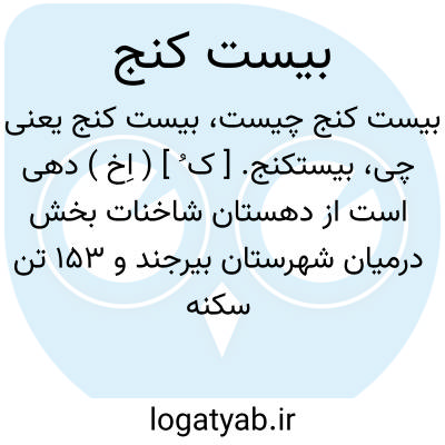 بیستکنج. [ ک ُ ] ( اِخ ) دهی است از دهستان شاخنات بخش درمیان شهرستان بیرجند و 153 تن سکنه دارد. ( از فرهنگ جغرافیایی ایران ج 9 ).