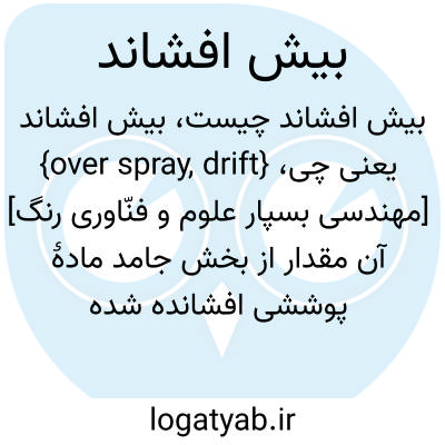 {over spray, drift} [مهندسی بسپار علوم و فنّاورى رنگ] آن مقدار از بخش جامد مادۀ پوششی افشانده شده ای که به جای سطح مورد نظر به سطوح مجاور چسبیده باشد