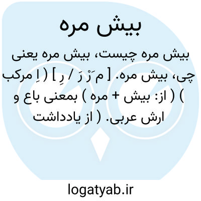 بیش مره. [ م َرْ رَ / رِ ] ( اِ مرکب ) ( از: بیش + مره ) بمعنی باع و ارش عربی. ( از یادداشت مؤلف ). رجوع به وشمار شود.
