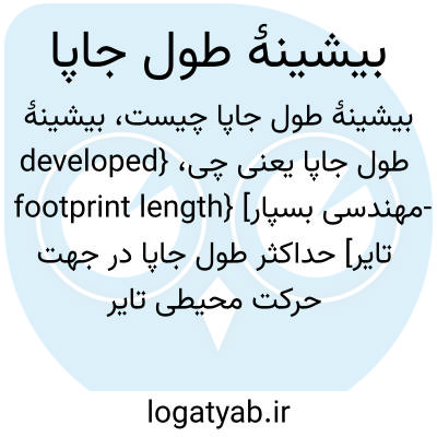 {developed footprint length} [مهندسی بسپار- تایر] حداکثر طول جاپا در جهت حرکت محیطی تایر در شرایط مشخص اندازه گیری