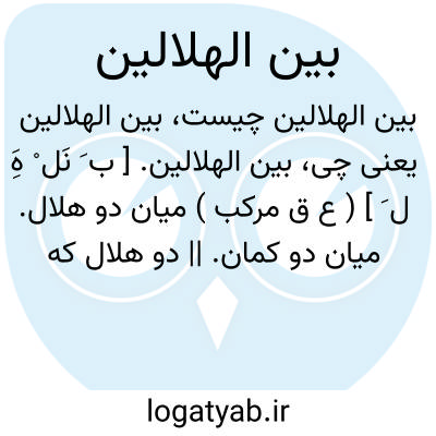 بین الهلالین. [ ب َ نَل ْ هَِ ل َ ] ( ع ق مرکب ) میان دو هلال. میان دو کمان. || دو هلال که در دو طرف جمله معترضه قرار دهند. دو پرانتز.