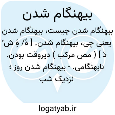 - بیهنگام شدن روز؛ نزدیک شب رسیدن آن. ( یادداشت مؤلف ): چون از خواب بیدار شد روز بیهنگام شده بود... گفت امشب باز جای شوم و آنگه فردا بطلب چیزی میروم. ( ترجمه طبری بلعمی ص 37 ).... گفت امروز بی هنگام شد فردا بیایم و هر دو با هم بگردیم [ جنگ کنیم ]. ( اسکندرنامه نسخه نفیسی ).