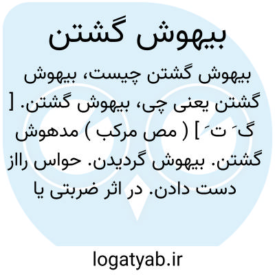 بیهوش گشتن. [ گ َ ت َ ] ( مص مرکب ) مدهوش گشتن. بیهوش گردیدن. حواس رااز دست دادن. در اثر ضربتی یا داروی بیهوشی مغمی علیه یا مغشی علیه گشتن. از خود بیخود گشتن: