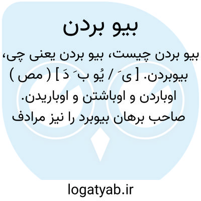 بیوبردن. [ ی َ / یُو ب َ دَ ] ( مص ) اوباردن و اوباشتن و اوباریدن. صاحب برهان بیوبرد را نیز مرادف این مصدر دانسته و نوشته است ماضی بیوباریدن است یعنی ناجاویده فروبرد و بلع کرد. و بمعنی مصدر هم آمده است که ناجاویده فروبردن باشد و در این لغت نیز همزه را به «یا» بدل کرده اند. همچو بانداخت که بینداخت شده. ( برهان ). رجوع به اوباریدن، اوبردن و بیوباریدن شود.
