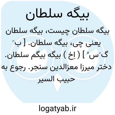 بیگه سلطان. [ ب َ گ َس ُ ] ( اِخ ) بیگه بیگم سلطان. دختر میرزا معزالدین سنجر. رجوع به حبیب السیر چ خیام ج 4 ص 115 به بعد شود.