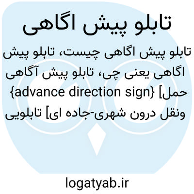 {advance direction sign} [حمل ونقل درون شهری-جاده ای] تابلویی که پیش از رسیدن به تقاطع نصب می شود و جهت مسیر و مقاصد پیش رو را نمایش می دهد