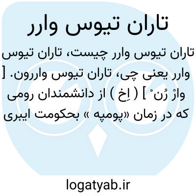 تاران تیوس واررون. [ وارْ رُن ْ ] ( اِخ ) از دانشمندان رومی که در زمان «پومپه » بحکومت ایبری ( اسپانیا ) منصوب شد:... بعلاوه اطلاعات مذکوره، یک نفر عالم رومی موسوم به تاران تیوس واررون که در قرن اول ق. م. میزیست و پومپه او را حاکم ایبری یا اسپانیای کنونی کرده بود، اسم پارسیها را درردیف فینیقیها و سایر ملل ذکر کرده، گوید: اینها درایبری حکومت کرده اند. ( ایران باستان ج 2 ص 1456 ).