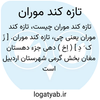 تازه کند موران. [ زَ ک َ دِ ] ( اِخ ) دهی جزء دهستان مغان بخش گرمی شهرستان اردبیل است که در 16هزارگزی شمال خاوری گرمی و 5هزارگزی شوسه گرمی - بیله سوار واقع است. کوهستانی و گرمسیراست و 118 تن سکنه دارد، شیعه، ترکی. آب آن از چشمه. محصول آن غلات و حبوبات. شغل اهالی زراعت و گله داری. راه مالرو دارد. ( از فرهنگ جغرافیائی ایران ج 4 ).