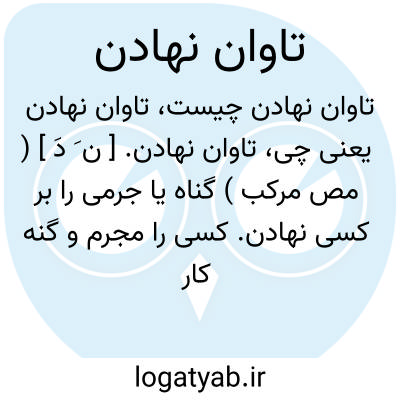 تاوان نهادن. [ ن َ دَ ] ( مص مرکب ) گناه یا جرمی را بر کسی نهادن. کسی را مجرم و گنه کار دانستن: پس آنچه شما کردید تاوان آن چون بر دیگران می نهید؟ ( کتاب النقض ص 387 ). آنچه شما رافضیان کردید تاوان با دیگران چون می نهید؟ ( کتاب النقض ص 386 ). رجوع به تاوان و ترکیبات دیگر آن شود.