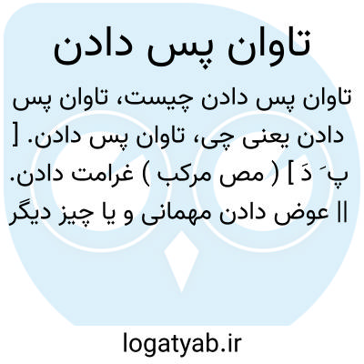 تاوان پس دادن. [ پ َ دَ ] ( مص مرکب ) غرامت دادن. || عوض دادن مهمانی و یا چیز دیگر را: فلان تاوان بکسی پس نمیدهد، یعنی همیشه دست بگیر دارد نه دست بده. رجوع به تاوان و سایر ترکیبات آن شود.