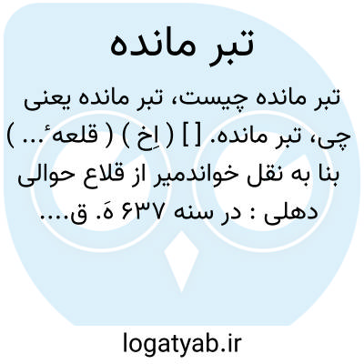 تبر مانده. [ ] ( اِخ ) ( قلعه ٔ... ) بنا به نقل خواندمیر از قلاع حوالی دهلی: در سنه 637 هَ. ق.... سلطان رضیه... عنان یکران بصوب دهلی انعطاف داده... روز چهارشنبه نهم رمضان همین سال بجانب قلعه تبر مانده که کوتوال آن با ملک الهوتیه موافق بودند خروج نمود. ( حبیب السیر چ 1 تهران ج 2 جزء 4 ص 222 ).