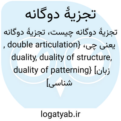 {double articulation , duality, duality of structure, duality of patterning} [زبان شناسی] تجزیۀ عناصر زبان به دو سطح واحدهای معنی دار یا تکواژ و واحدهای فاقد معنی یا واج