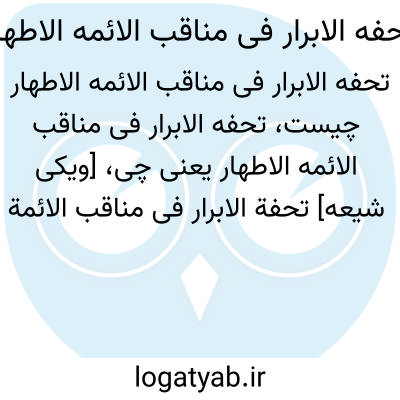 [ویکی شیعه] تحفه الابرار فی مناقب الائمه الاطهار (کتاب). تُحفَةُ الأبرار فی مَناقب الأئمه الأطهار(ع)، کتابی به زبان فارسی نوشته عمادالدین حسن بن علی طبری (زنده در ۷۰۱ق). نویسنده در این کتاب به اثبات ولایت و امامت امیرالمؤمنین(ع) و حقانیت تشیع می پردازد.