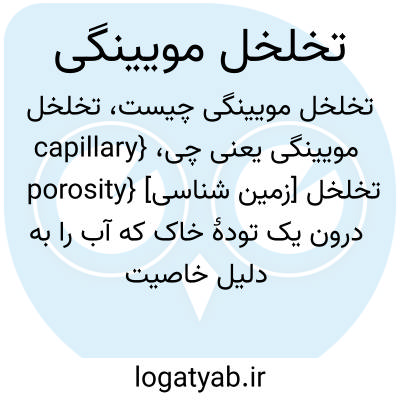 {capillary porosity} [زمین شناسی] تخلخل درون یک تودۀ خاک که آب را به دلیل خاصیت مویینگی نگه می دارد