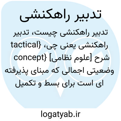 {tactical concept} [علوم نظامی] شرح وضعیتی اجمالی که مبنای پذیرفته ای است برای بسط و تکمیل رهنامۀ راهکنشی در آینده