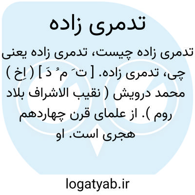 تدمری زاده. [ ت َ م ُ دَ ] ( اِخ ) محمد درویش ( نقیب الاشراف بلاد روم ). از علمای قرن چهاردهم هجری است. او راست: الاسعاف لنقیب السادة الاشراف ( رساله ای در نحو ) که بسال 1299 هَ. ق. از تألیف آن فراغت یافت و بسال 1312 هَ. ق. در مطبعه علمیه به طبع رسیده. ( معجم المطبوعات ج 1 ستون 629 ).