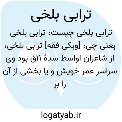 [ویکی فقه] ترابی بلخی، از شاعران اواسط سدۀ ۱۱ق بود وی سراسر عمر خویش و یا بخشی از آن را بر سر مزاری در بلخ که به مرقد امیرالمؤمنین علی (علیه السلام) مشهور است، معتکف بود.