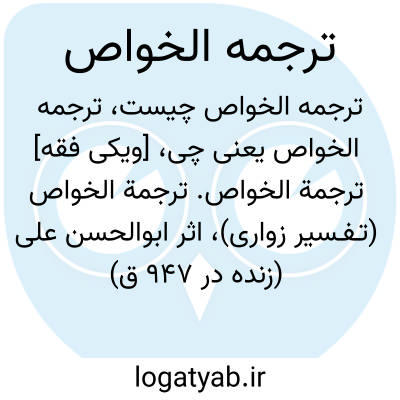 [ویکی فقه] ترجمة الخواص. ترجمة الخواص (تـفـسیر زواری)، اثر ابوالحسن علی (زنده در ۹۴۷ ق) فرزند حسن زواری، از مفسران و علمای امامیه می باشد.