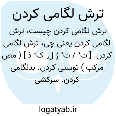 ترش لگامی کردن. [ ت ُ / ت ُ رُ ل ِ ک َ دَ ] ( مص مرکب ) توسنی کردن. بدلگامی کردن. سرکشی کردن: باوی [ اسب ] به چربی گوی و رخساره او بمال تا بر دست تو خو کند، آنگه پاره ای نمک اندر دست بده تا بخوردو مزه یابد و خو کند و ترش لگامی نکند. ( فرسنامه ).