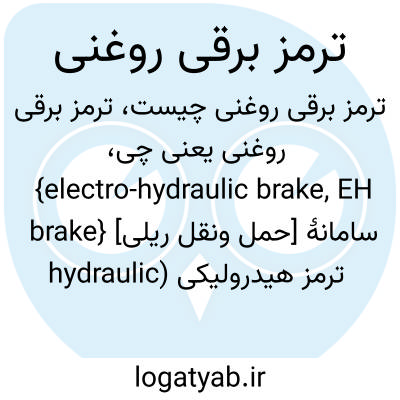 {electro-hydraulic brake, EH brake} [حمل ونقل ریلی] سامانۀ ترمز هیدرولیکی (hydraulic ) که با فشار روغن کار می کند و با فرمان الکتریکی هدایت می شود