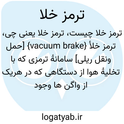 {vacuum brake} [حمل ونقل ریلی] سامانۀ ترمزی که با تخلیۀ هوا از دستگاهی که در هریک از واگن ها وجود دارد عمل می کند