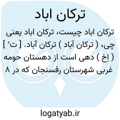 ( ترکان آباد ) ترکان آباد. [ ت ُ ] ( اِخ ) دهی است از دهستان حومه غربی شهرستان رفسنجان که در 8 هزارگزی شمال باختری رفسنجان و 7 هزارگزی شمال شوسه رفسنجان به یزد قرار دارد. جلگه ای سردسیر است و 90 تن سکنه دارد. آب آن از قنات و محصول آنجا غله و پنبه و پسته و شغل مردم آنجا زراعت است. و راه فرعی دارد. ( از فرهنگ جغرافیایی ایران ج 8 ).