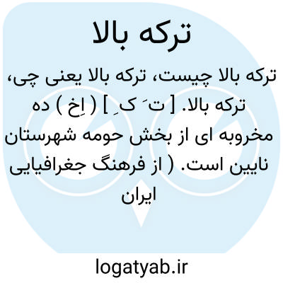 ترکه بالا. [ ت َ ک ِ ] ( اِخ ) ده مخروبه ای از بخش حومه شهرستان نایین است. ( از فرهنگ جغرافیایی ایران ج 10 ).