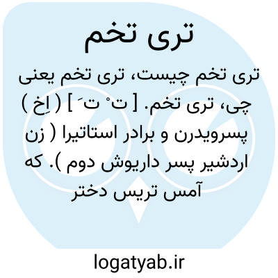 تری تخم. [ ت ْ ت َ ] ( اِخ ) پسرویدرن و برادر استاتیرا ( زن اردشیر پسر داریوش دوم ). که آمس تریس دختر داریوش را بزنی گرفت و چون پدرش درگذشت به جای او والی شد و عاشق خواهرخود رُکسانَه گردید و در صدد قتل آمس تریس برآمد ولی توطئه او کشف شد و داریوش یکی از ندیمان وی را مأمور نجات آمس تریس کرد. تری تخم بدست وی کشته شد. و رجوع به ایران باستان ج 2 ص 961 و تریتن تخمس شود.