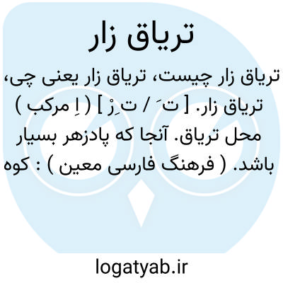 تریاق زار. [ ت َ / ت ِرْ ] ( اِ مرکب ) محل تریاق. آنجا که پادزهر بسیار باشد. ( فرهنگ فارسی معین ):
