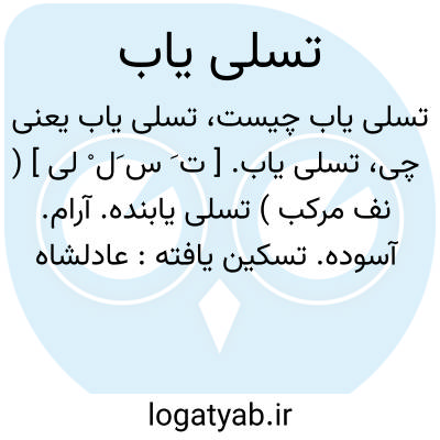تسلی یاب. [ ت َ س َل ْ لی ] ( نف مرکب ) تسلی یابنده. آرام. آسوده. تسکین یافته: عادلشاه بدین سخنان فریب آمیز تسلی یاب شد ( تاریخ شاهی ص 354 ).