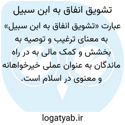عبارت «تشویق انفاق به ابن سبیل» به معنای ترغیب و توصیه به بخشش و کمک مالی به در راه ماندگان است. این ترکیب از چند بخش تشکیل شده است: «تشویق» به معنای ترغیب، تشویق یا تشویق کردن، «انفاق» به معنای بخشیدن مال، کمک کردن و صرف در راه خدا، و «ابن‌سبیل» شامل راه‌ماندگان، مسافران نیازمند و کسانی است که در مسیر خیر یا سفر به کمک نیاز دارند، مانند مسافر بی‌پول، نیازمند یا کسی که در راه خدا در حرکت است. این مفهوم در قرآن کریم و احادیث اسلامی مورد تأکید قرار گرفته و یکی از مظاهر صدقه و احسان محسوب می‌شود. انفاق به ابن‌سبیل به عنوان عملی خیرخواهانه و نیکو در جامعه شناخته می‌شود که هم به نیازمند کمک می‌رساند و هم ارزش اخلاقی و معنوی برای بخشنده دارد. این نوع انفاق معمولاً بدون انتظار بازگشت مالی انجام می‌شود و هدف آن تقویت روح همدلی، بخشندگی و حمایت از دیگران است. در آموزه‌های دینی، تشویق به انفاق به ابن‌سبیل نشان‌دهنده اهمیت حمایت از مسافران، فقرا و افراد در مسیر خیر است.