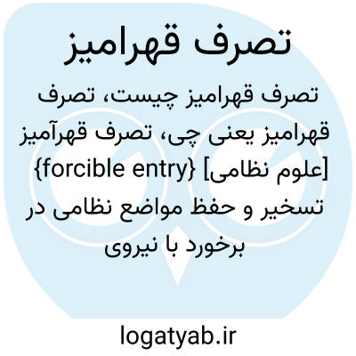 {forcible entry} [علوم نظامی] تسخیر و حفظ مواضع نظامی در برخورد با نیروی متخاصم مسلح متـ. تصرف قدرتمندانه