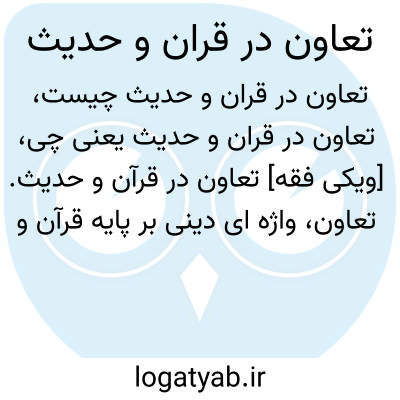 [ویکی فقه] تعاون در قرآن و حدیث. تعاون، واژه ای دینی بر پایه قرآن و حدیث با مضمون اخلاقی است، در این مقاله درباره تعاون در قرآن و حدیث و بعضی از مصادیق تعاون سخن گفته می شود.